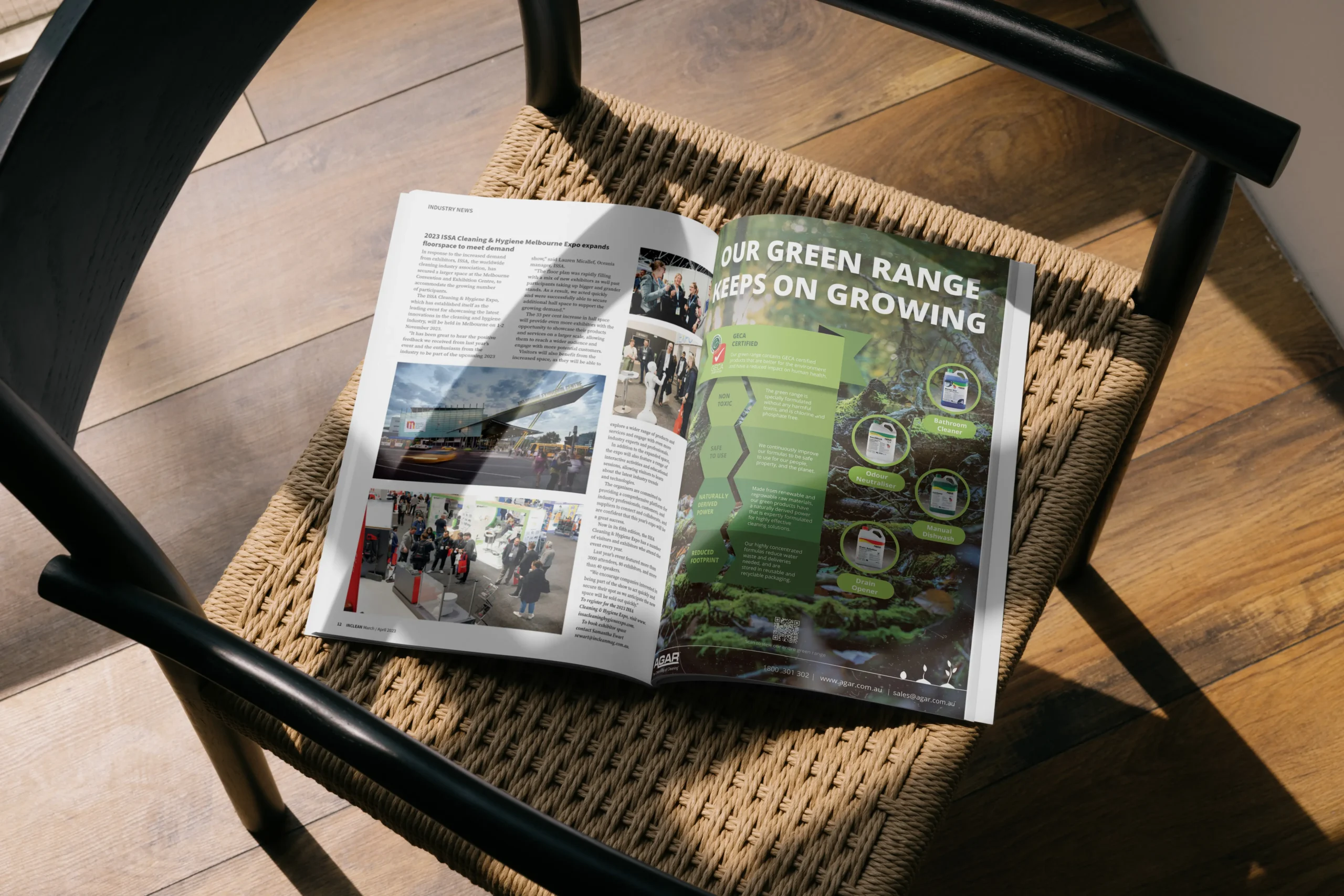 This project is an ongoing series of print advertisements developed for Agar and published in InClean Magazine over the past four years. The work includes full-page and quarter-page advertisements across multiple product ranges, produced for a specialist trade audience in cleaning and facilities management.